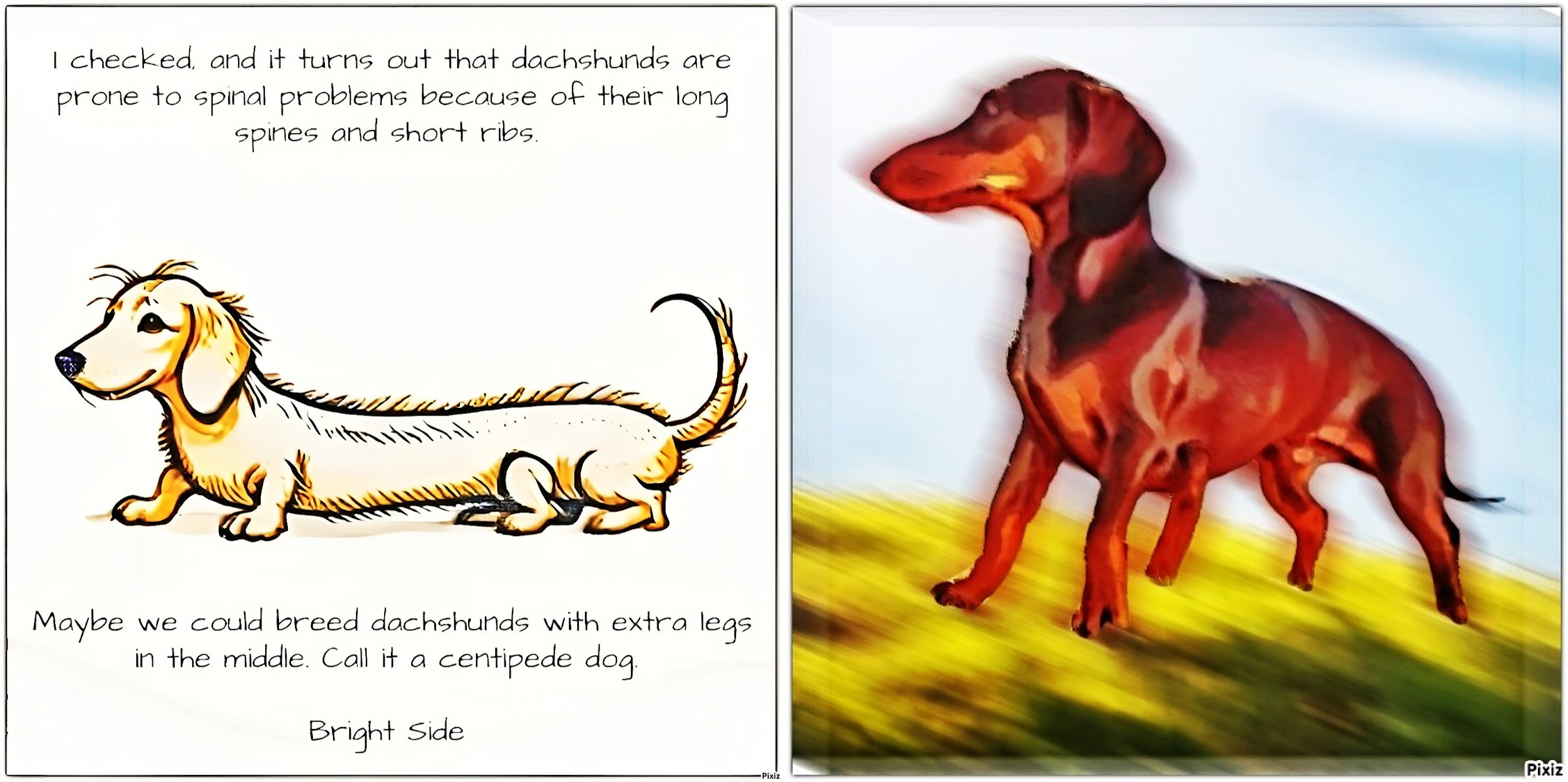 I made a joke about a centipede dog and a fan sent me a picture of one. When I pointed out that the extra legs were not in the middle, he sent me another one. Say what you want, but at least these dogs are healthier than the average pug.