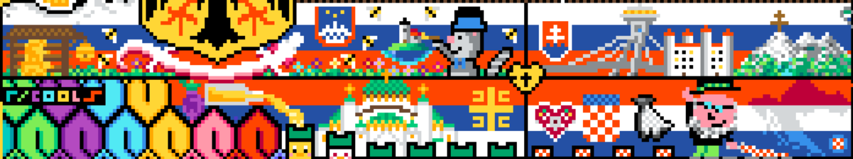 As you probably know, Reddit had a event where it gave its users a giant canvas to paint on as they wish. People teamed up a drew all sort of pictures, mostly flags. To my pleasure, I found several Croatian flags on the canvas. I think it would be fun if I showcased them and explained everything that I recognized. I know a lot of you are not Croatian, so this might be interesting to you.