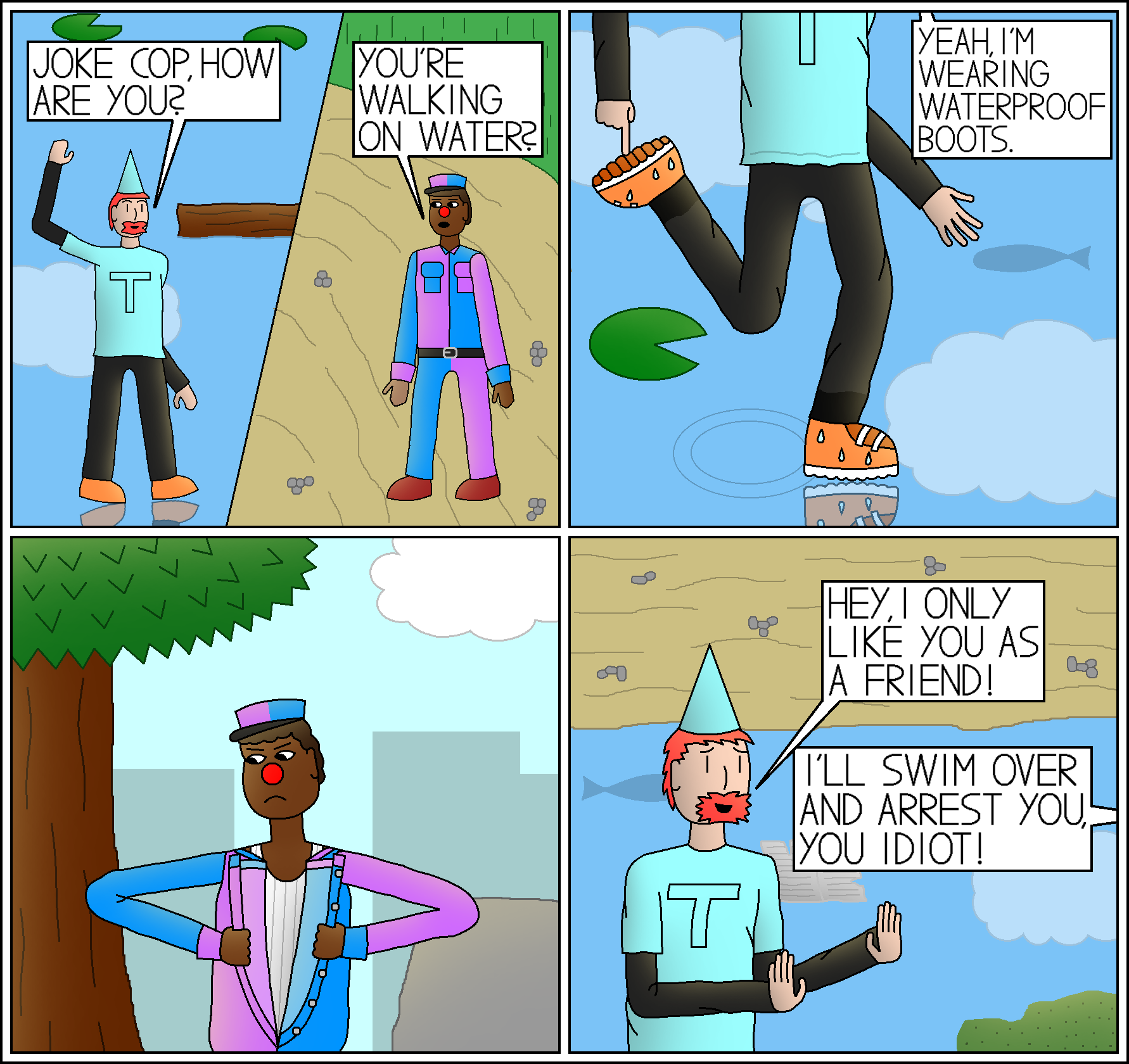 Last time I drew a character’s lower half, someone complained about the lack of shadows. Thanks to that person, I remember to insert a reflection in the water.