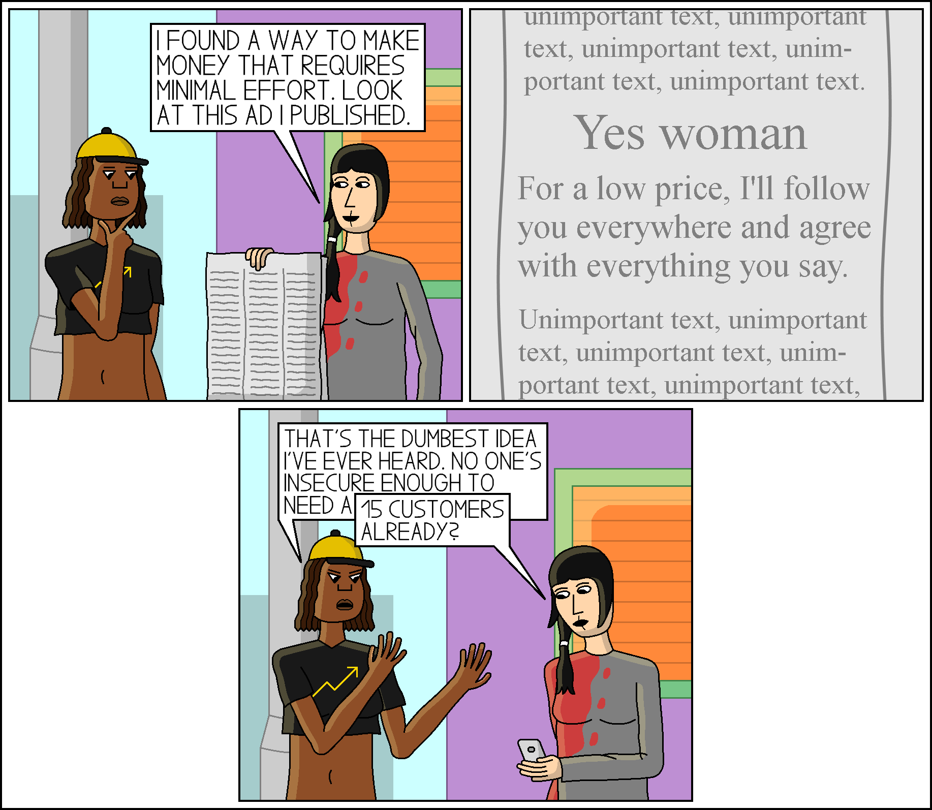 Comic 194: The Newest Profession August 2, 2021 On the other hand, I wouldn’t be surprised if something like this exists already. The world’s a big (and weird) place.