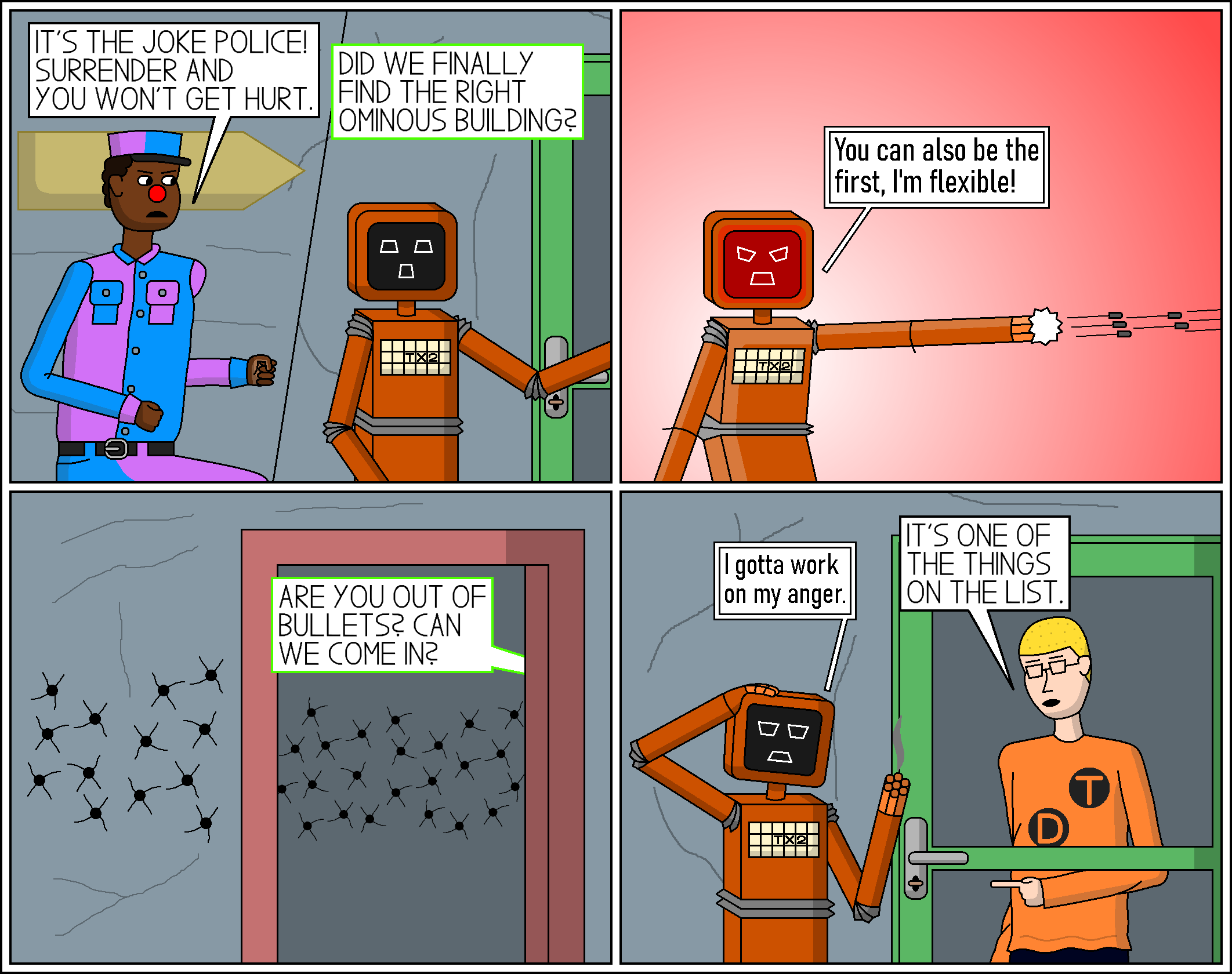 Comic 202: Artificial Insecurity, Part 7 August 23, 2021 Of course he goes back to mocking him as soon the danger is over…