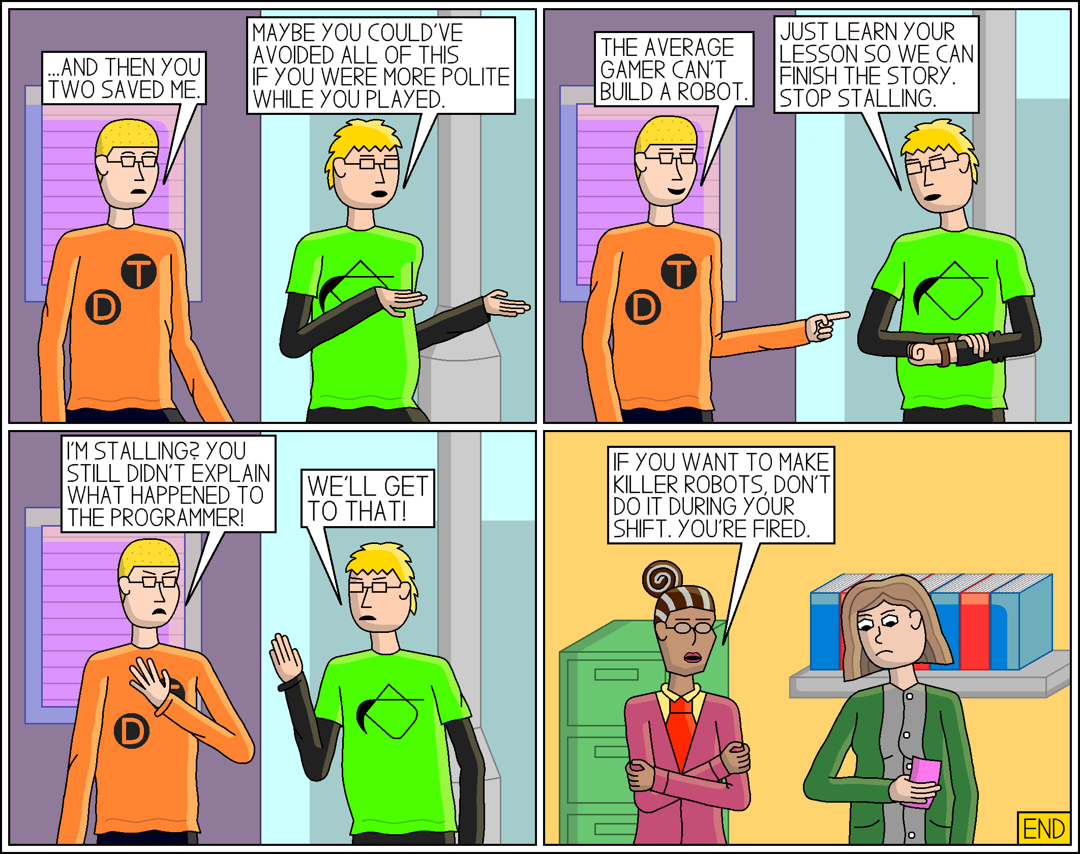 Comic 205: Artificial Insecurity, Part 10 August 30, 2021 And that’s a wrap. Safe to say it’s been a rough day for all of us.