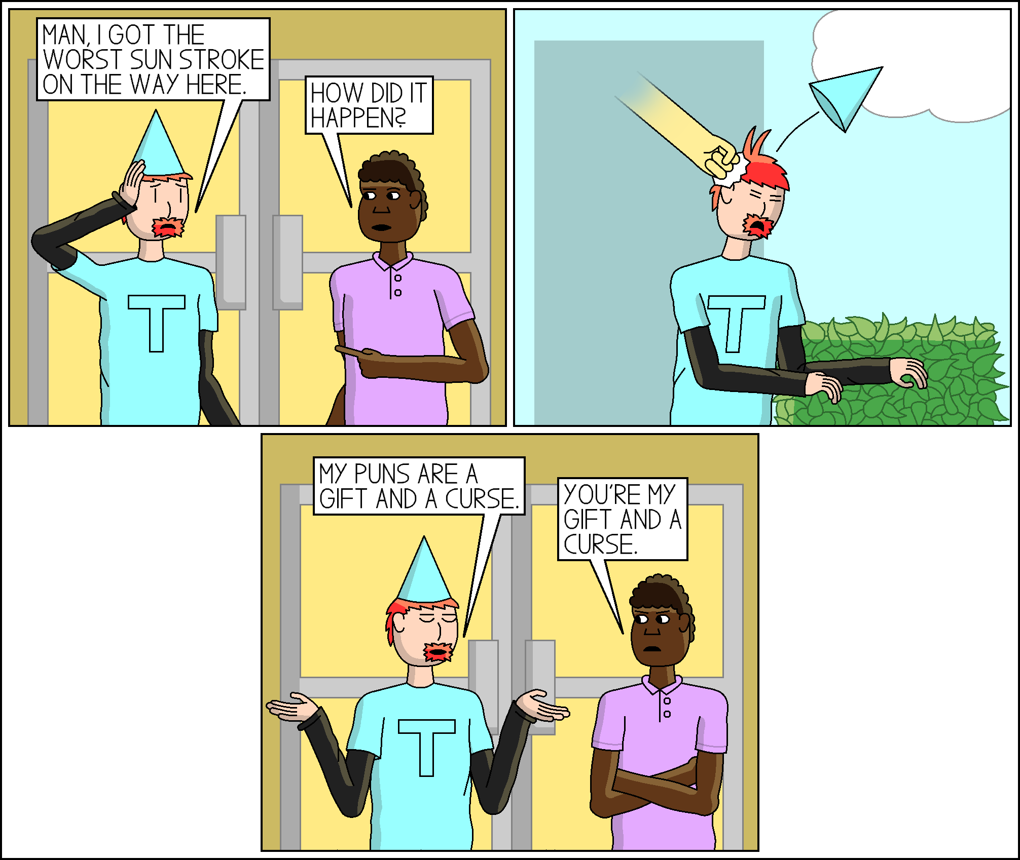 Comic 212: Harsh Weather September 24, 2021 When it’s hot outside, don’t forget the sunscreen. And a boxing helmet.