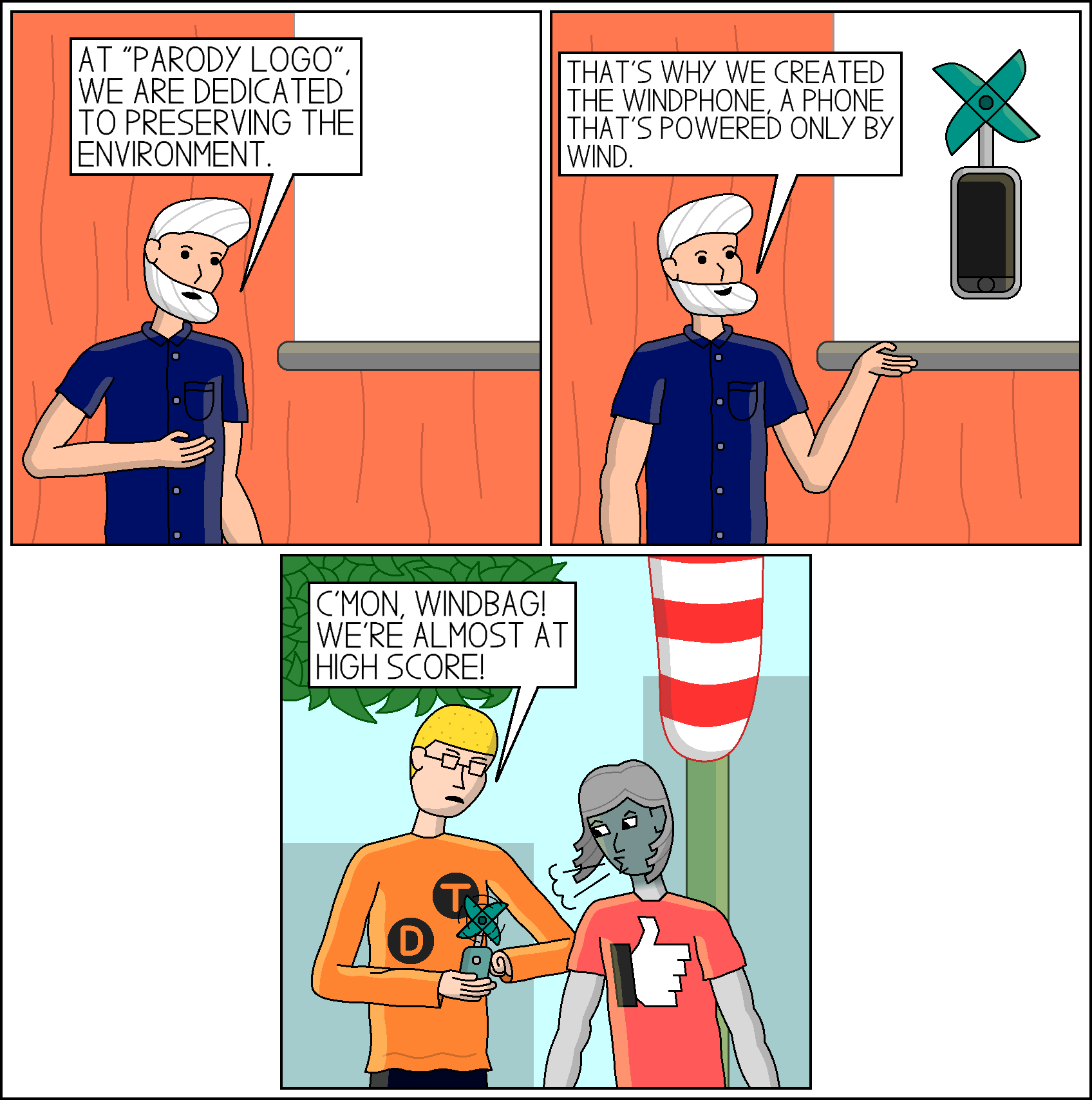 Comic 246: Nothing in My Sails January 21, 2022 Yeah, I have no idea how Parody Logo stays in business. Maybe it’s my advertising.