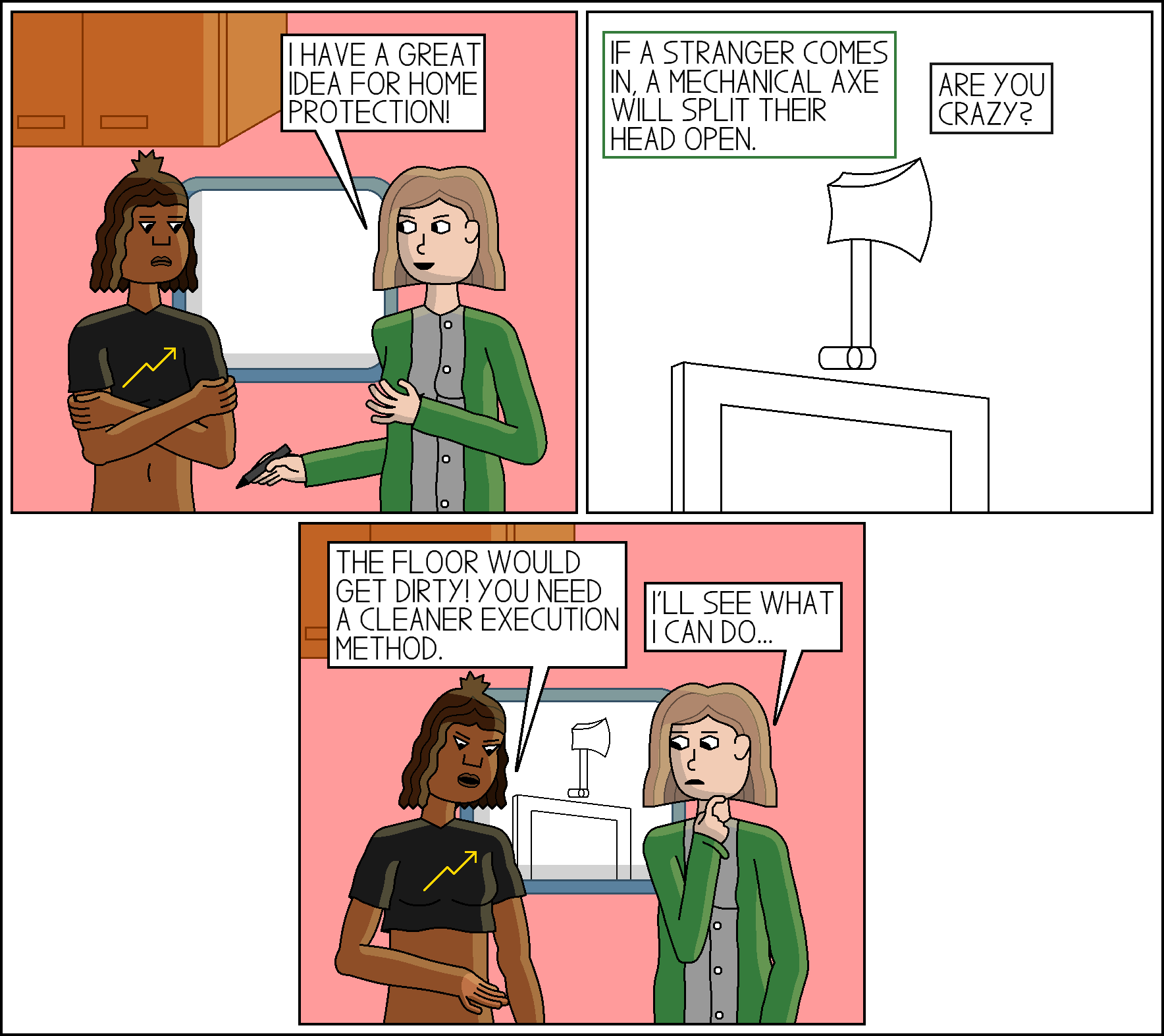 Comic 247: Don't Get to the Choppa January 24, 2022 Don’t worry, the axe only has a 5% chance of killing the owner of the house.