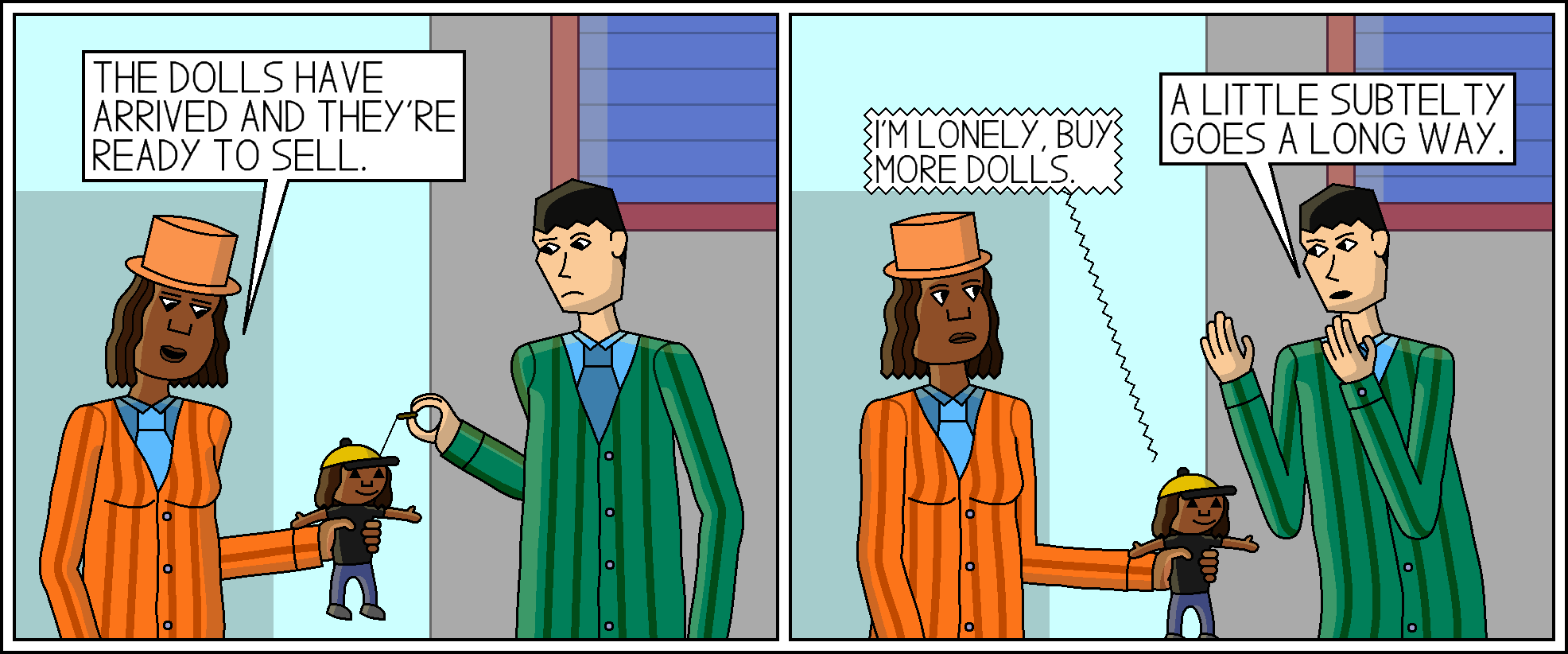Comic 279: Avarice Annie, Just For You May 9, 2022 Alright, you wanted names for the Joke Mob members, let’s get it started. His name is Cash Savings.