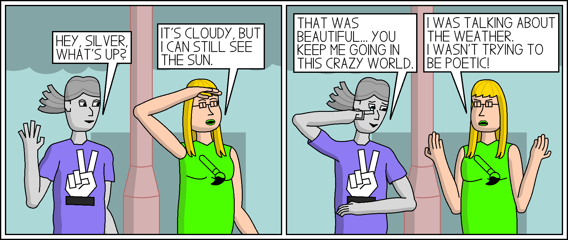 You asked what the Commenter was like in the genderswapped dimension. I can’t genderswap a non-binary character, but I can at least make them look a little different. Their name is the Spectator.