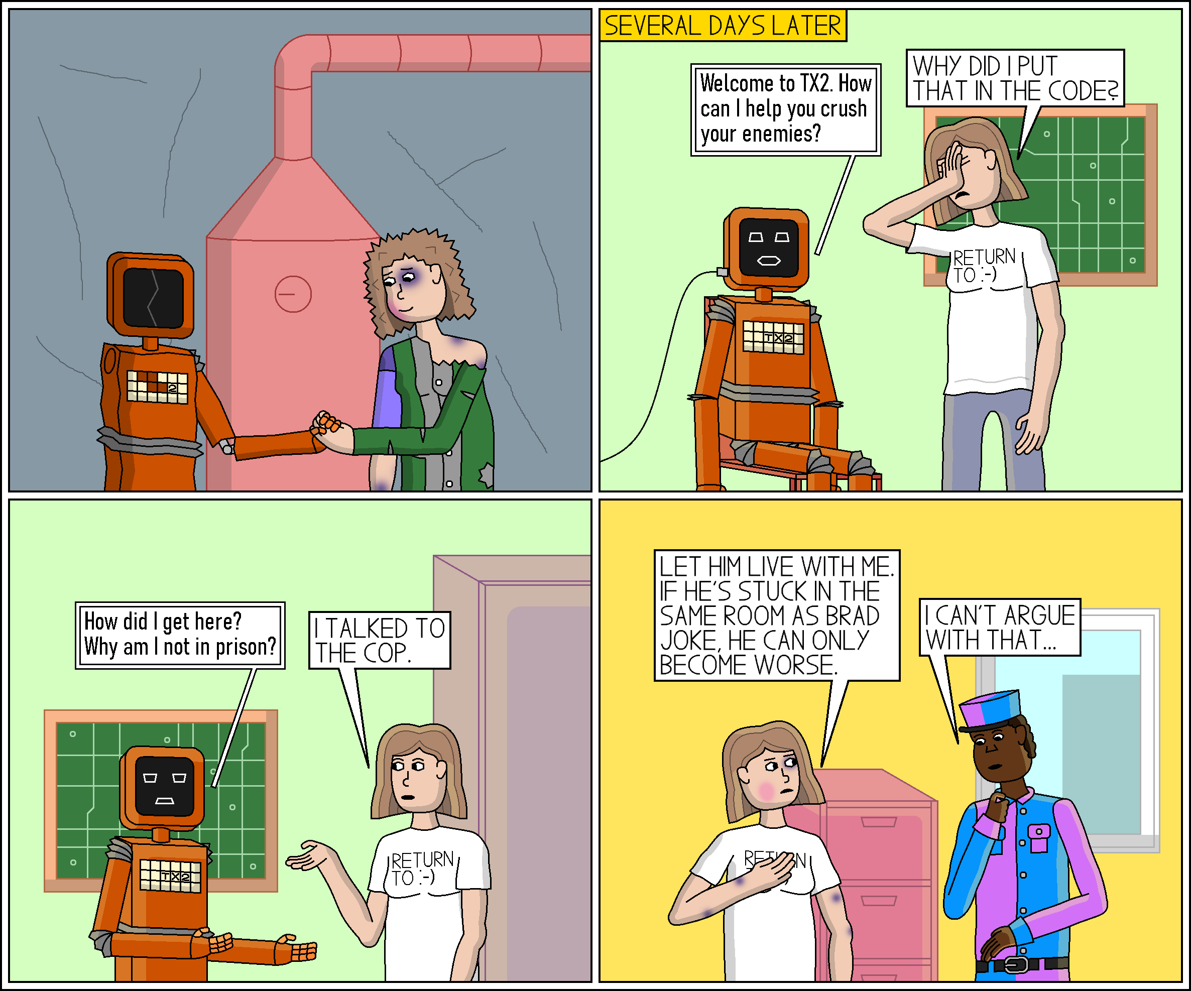 Comic 313: The Missing Piece, Part 10 August 26, 2022 If an actual computer said that every time it turned on, would it sell better or worse?