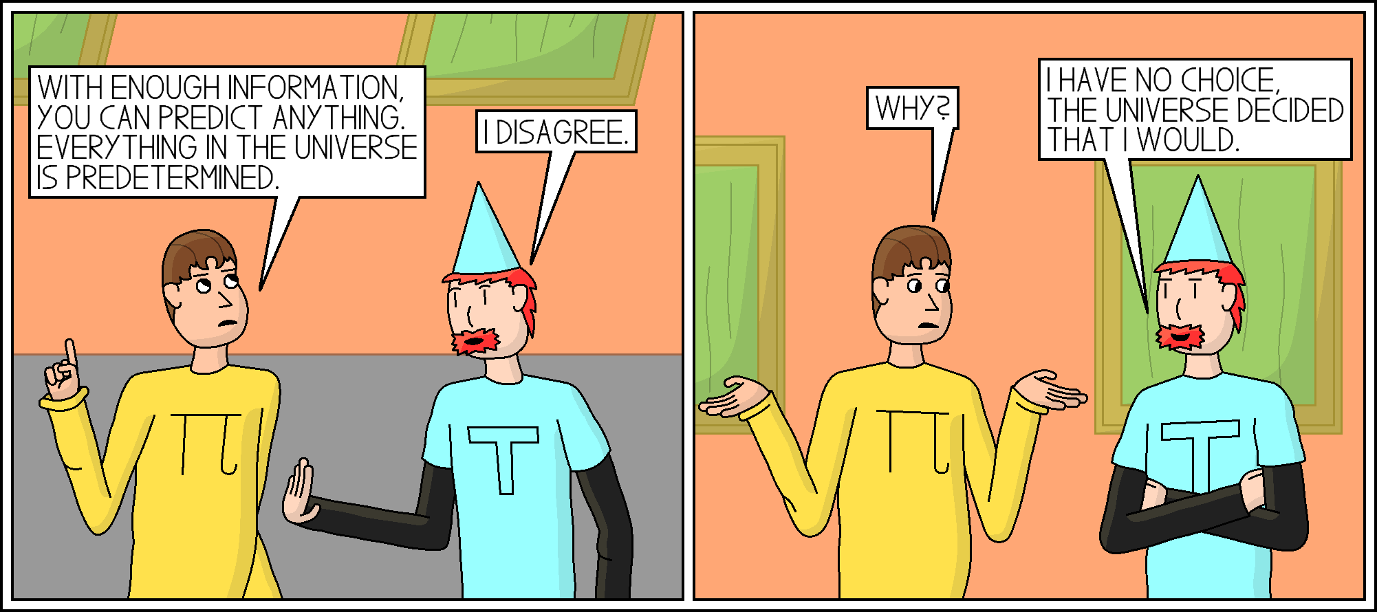 Comic 327: The Cosmic Dice Are Loaded! October 14, 2022 I can’t believe you didn’t predict that, Pi Brain.