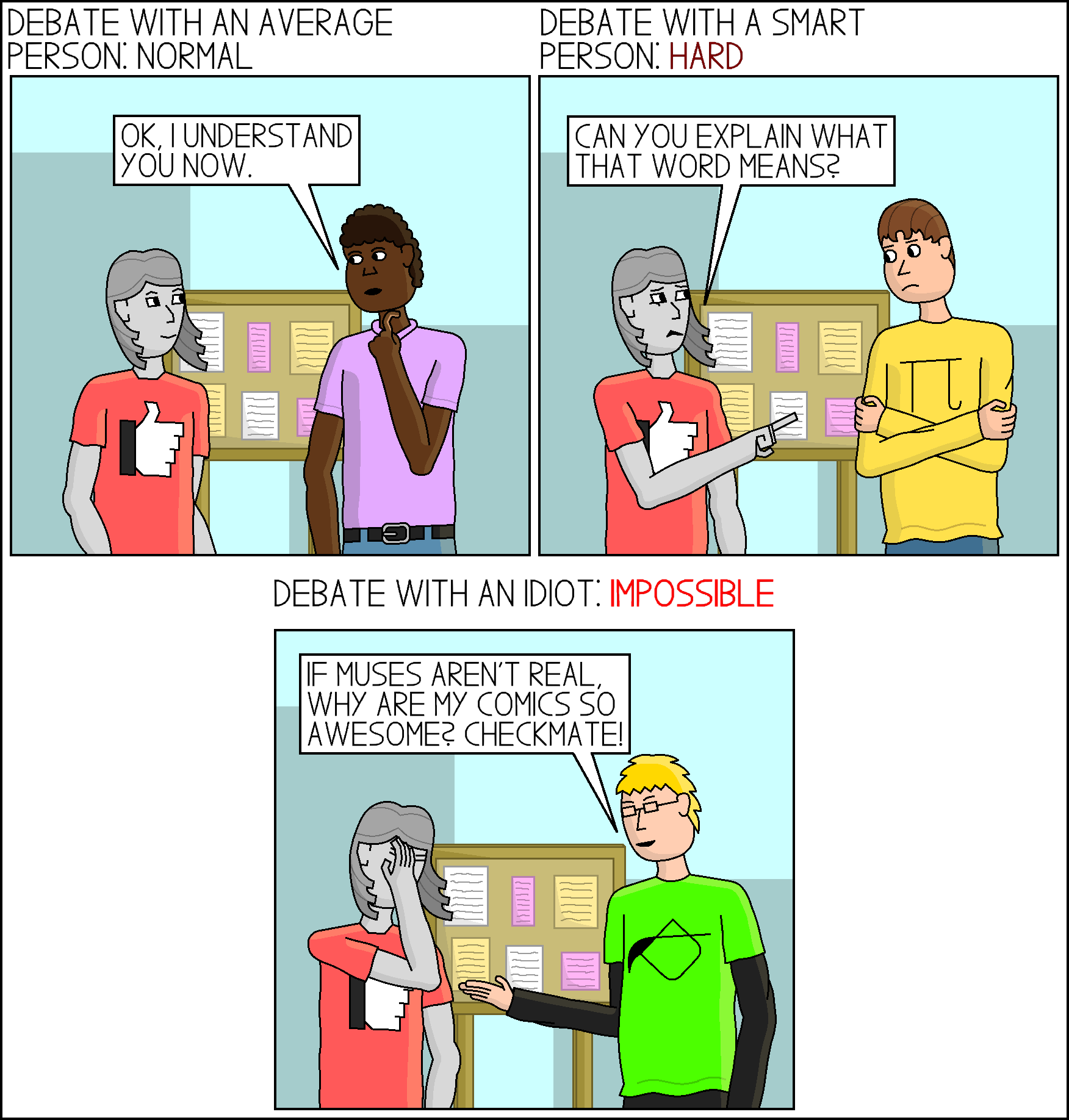 Comic 328: Can't Argue with That! October 17, 2022 Once you’ve debated with everyone, you have to face me as the final boss. No, I don’t know how I got there either.