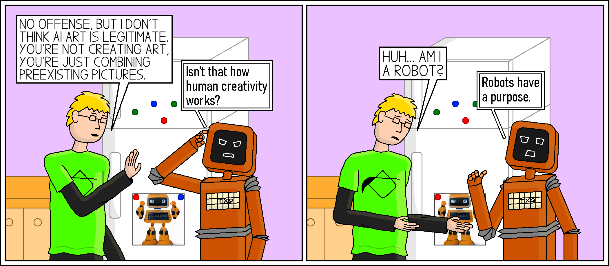 Computer-generated art is supposed to benefit humanity. I don’t know if it will do that in the long run, but at least it helped me make a comic.