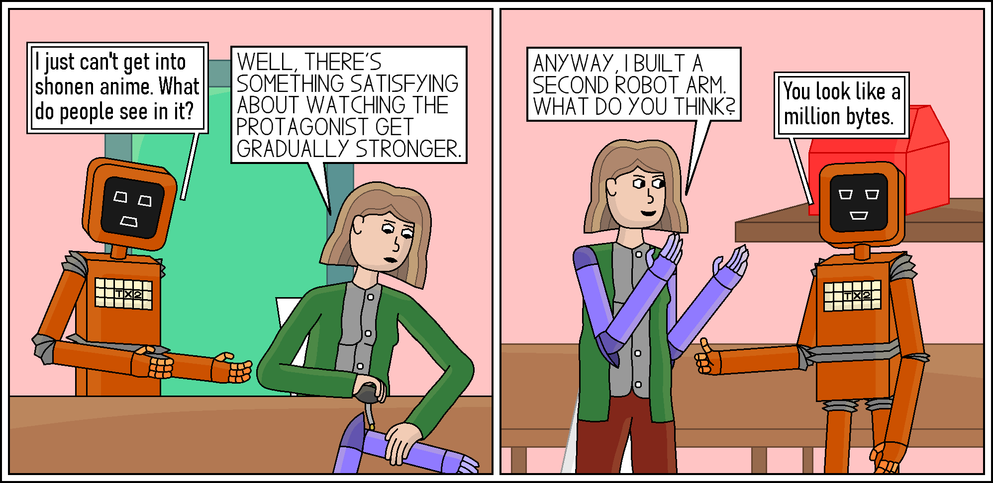Comic 339: I Wanna Be the Very Best... November 25, 2022 Yeah, it was about time I showed TX2 being happy about something. Other than the prospect of his nemesis dying, that is.