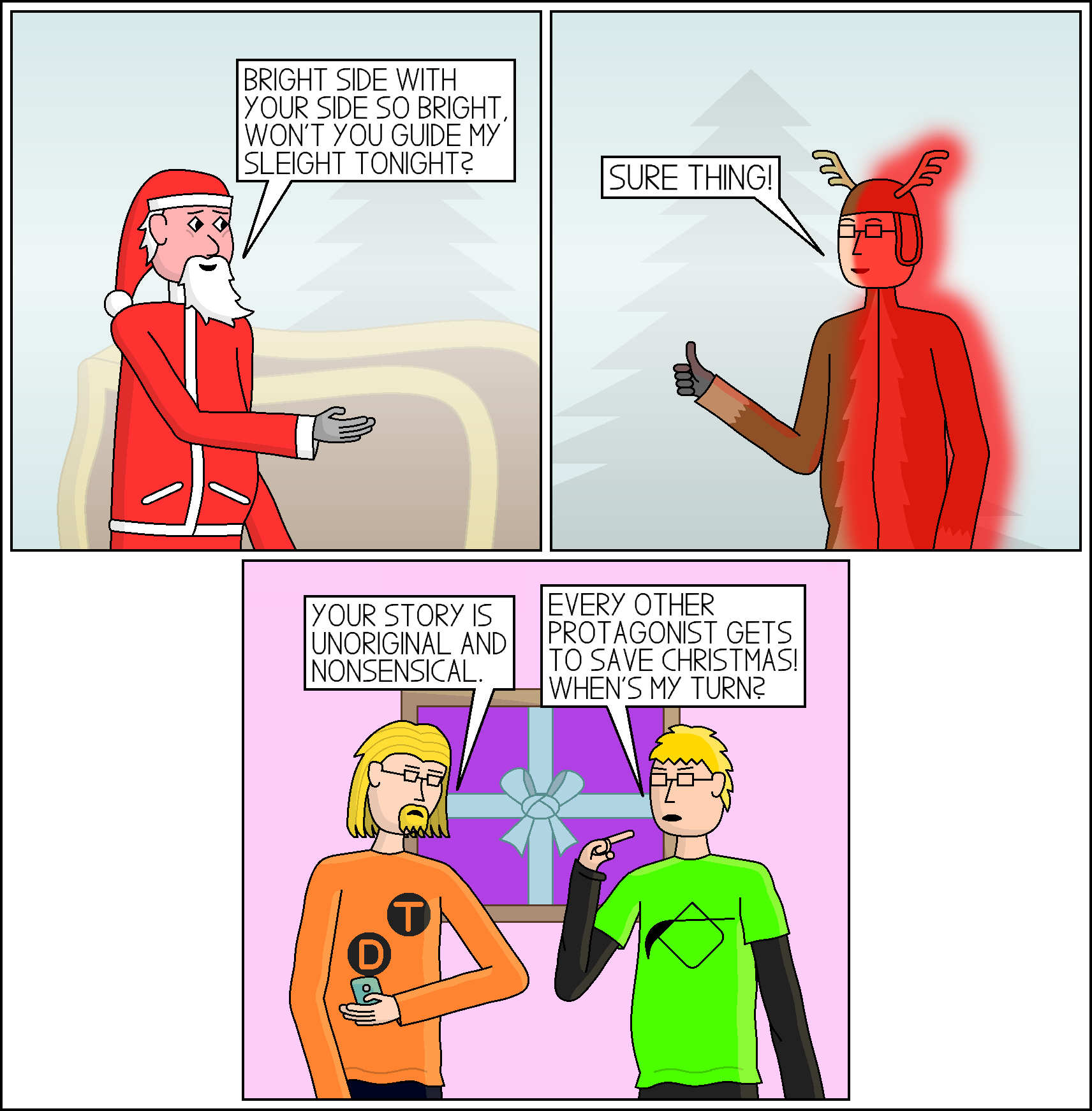 Comic 345: Bright Side the Bright Sided Bright Side December 16, 2022 I wonder how many times I can say “Bright Side” before people get annoyed.
