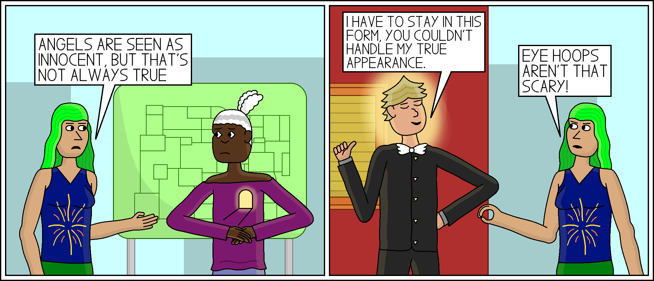 Comic 356: Biblically Accurate Braggart January 23, 2023 Freedom said she didn’t like religion. She didn’t say anything about believing in it.