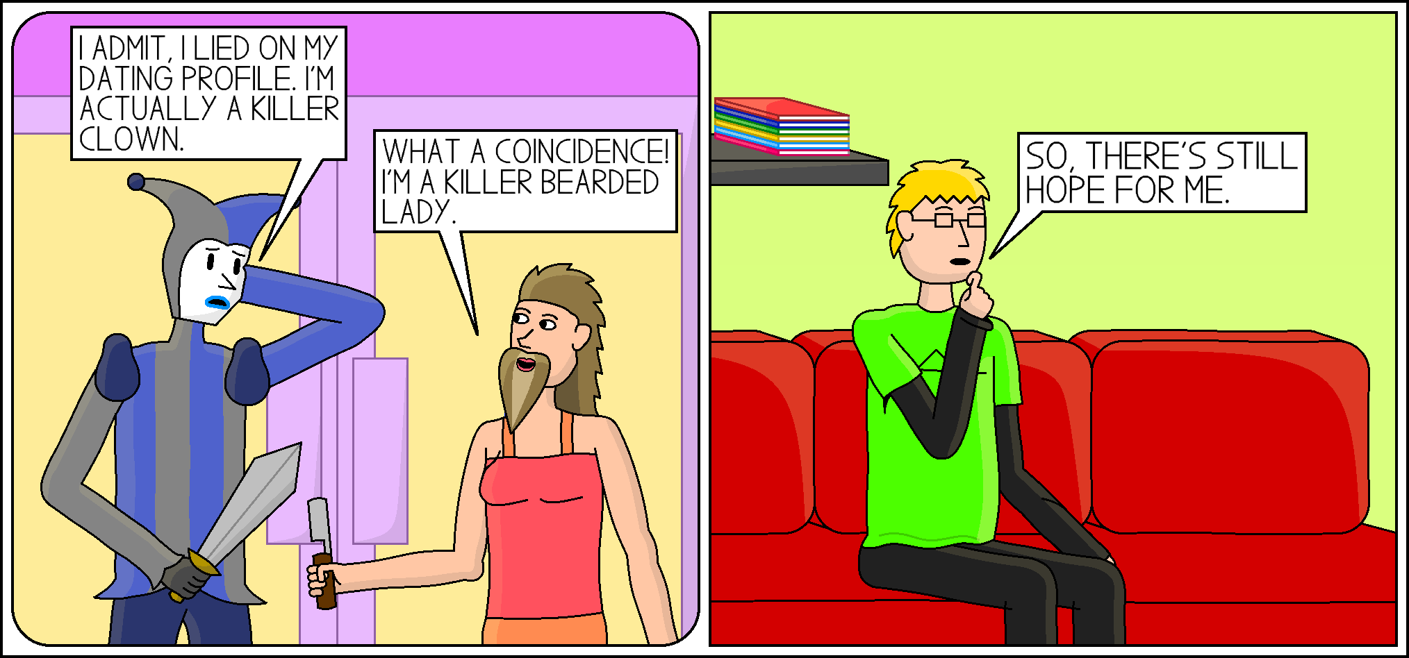 Comic 362: My Not as Bad Half February 13, 2023 Let’s just say those two are gonna paint the town red. Happy early Valentine’s Day!