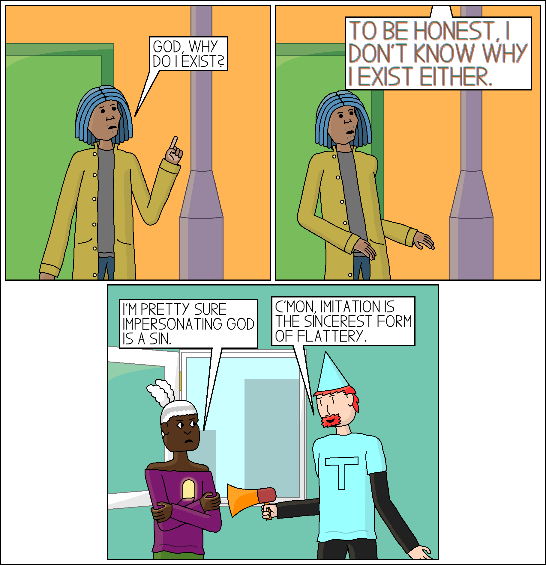 Comic 371: I Despair, therefore I Am March 17, 2023 If God really was a prankster, it would explain a lot.