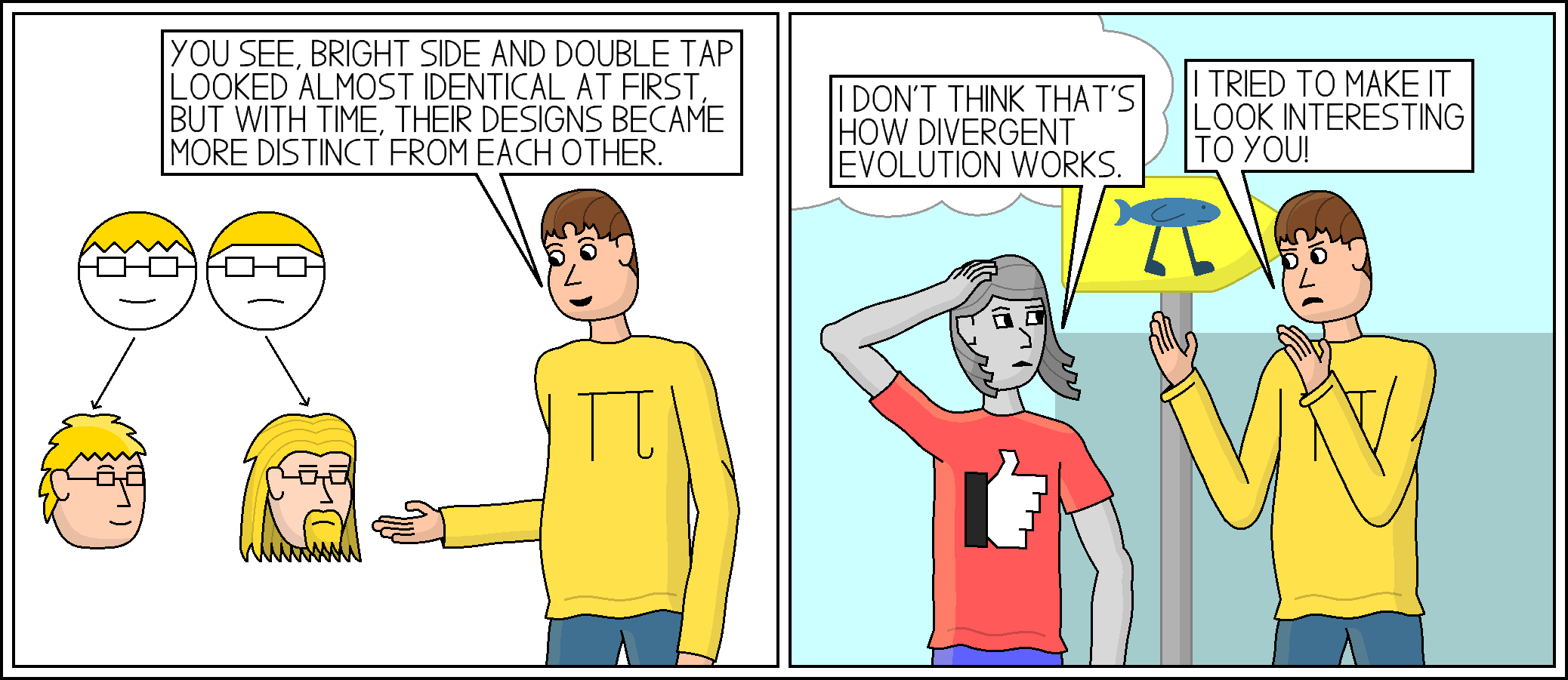 Comic 373: The Spice of Life March 24, 2023 Almost anyone who sees us in real life will comment on how similar we look. Maybe that’s why my brother grew a beard.