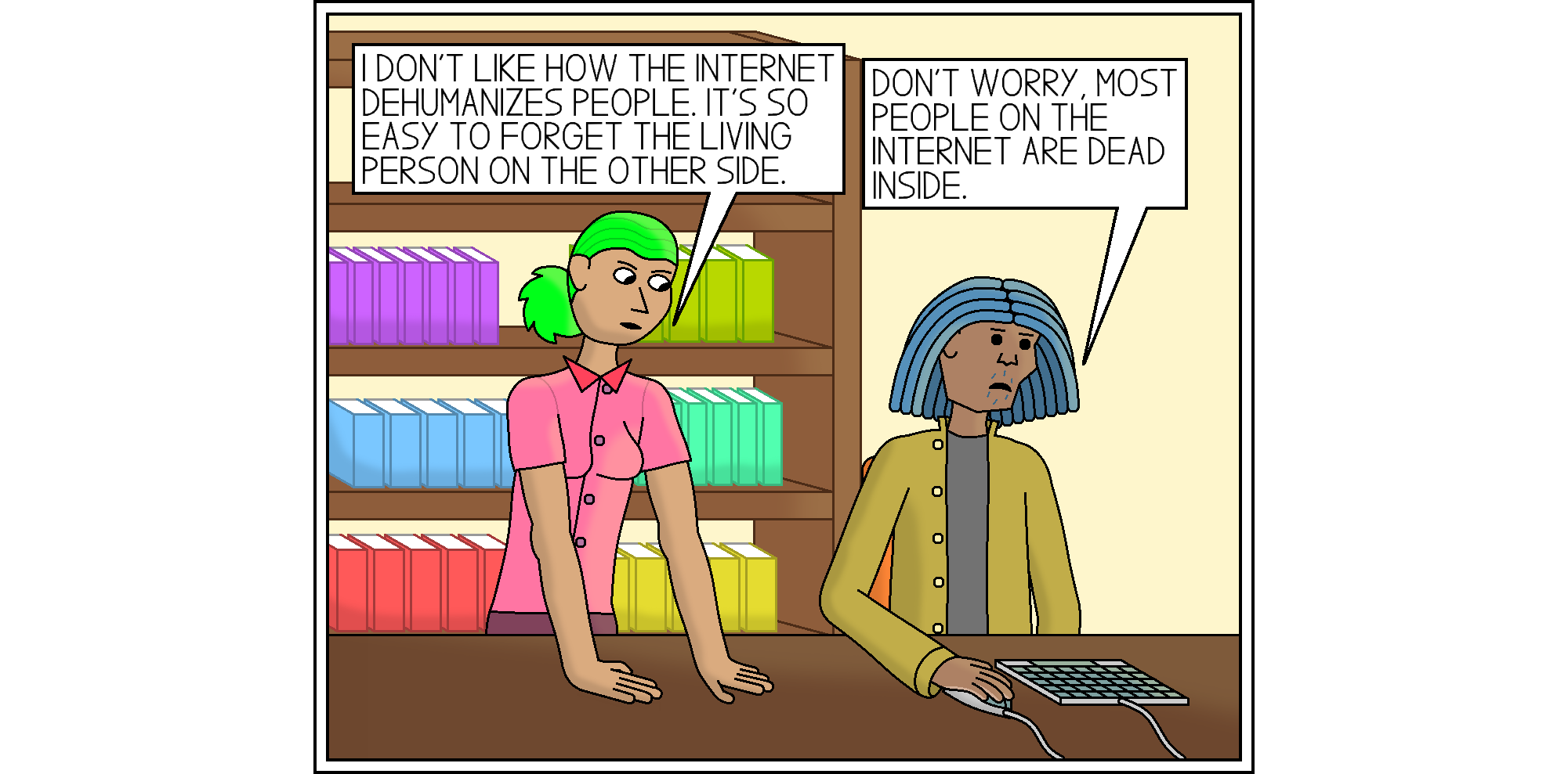 Comic 504: Disconnected Connection May 16, 2024 Alternatively, you could just tell yourself that everyone who disagrees with you is a bot.