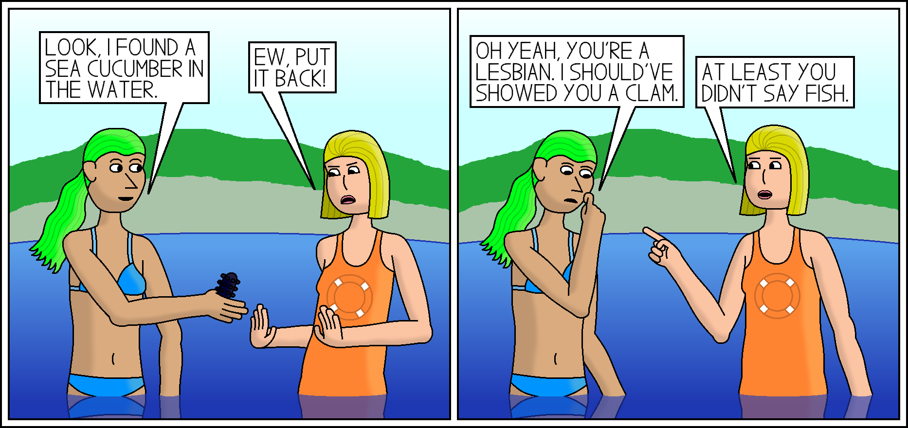 Comic 524: Fun in the Swimming Hole August 26, 2024 There’s enough slang terms for genitals to write a whole dictionary. We humans are very immature, aren’t we?