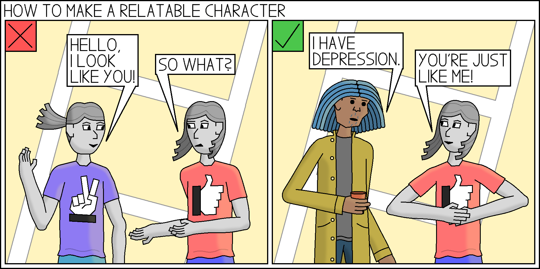 There’s nothing wrong with wanting to be represented by the media, but a character doesn’t need to look like you in order to be relatable. As cliche as it sounds, people are a lot more than their appearances.