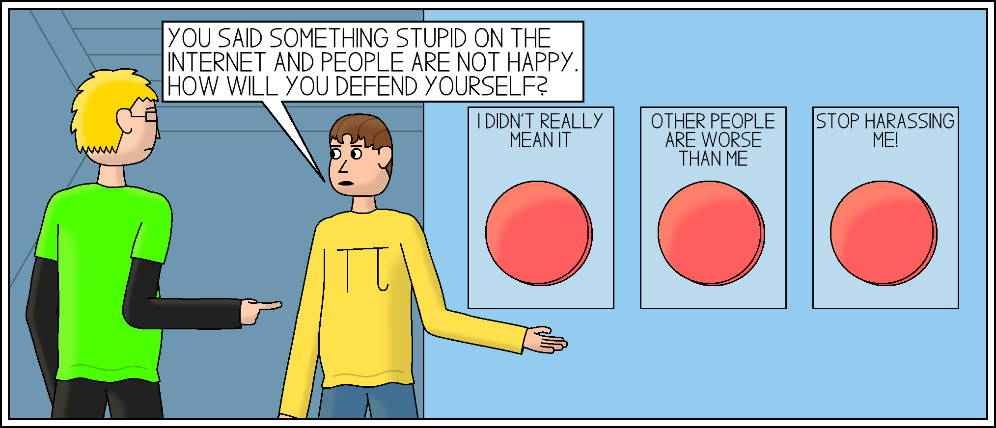 Comic 570: Flame War Retardant February 3, 2025 I’m a comedian, so the first one looks appealing. But I’m also a snowflake, so maybe I’ll go for the third one.