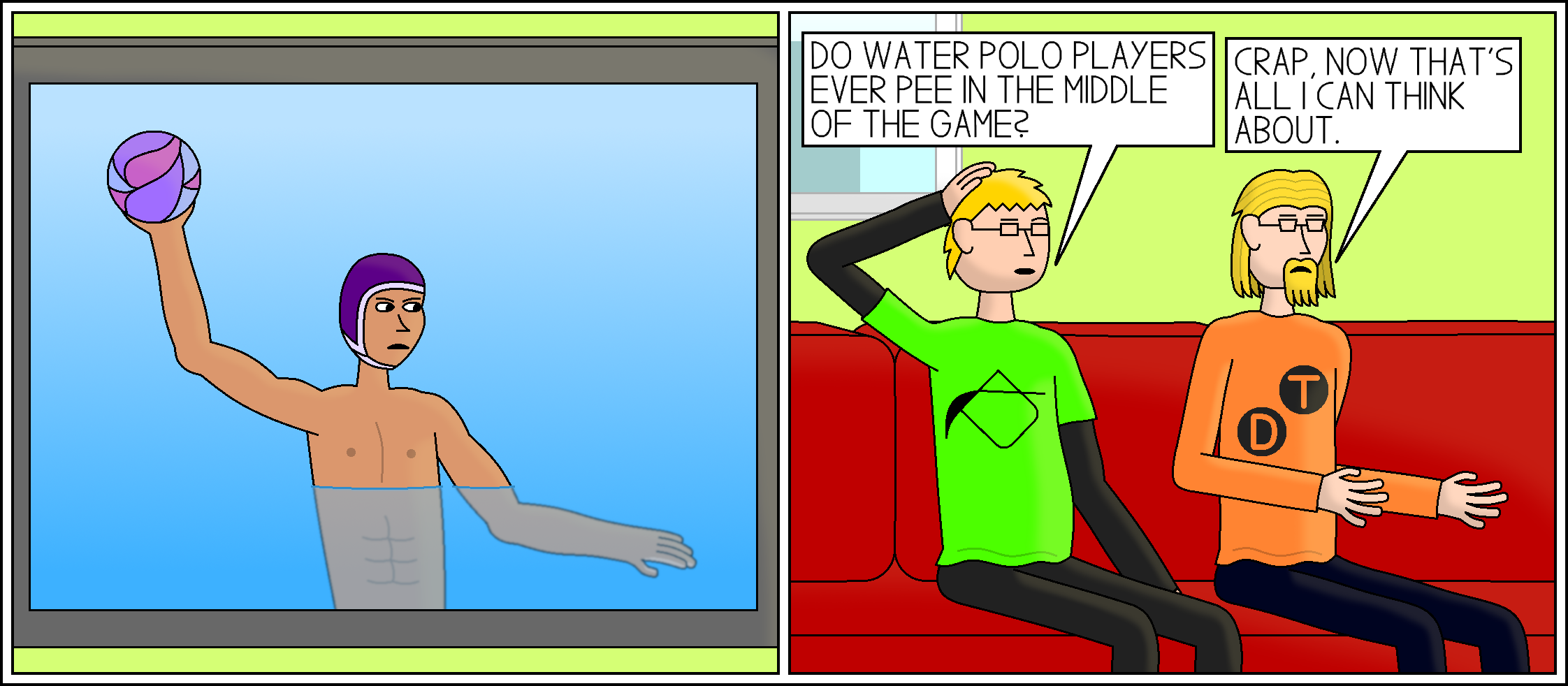 Comic 597: Urine the Zone May 9, 2025 Maybe that’s why I’ve never seen water polo players in loose boxers.