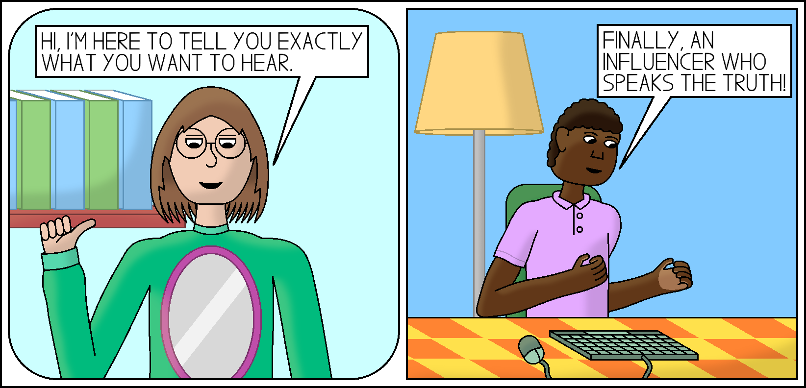 Comic 598: Mirror, Mirror, on the Wall... May 12, 2025 You are smart and beautiful. The best movie of all time is the one you like the most.