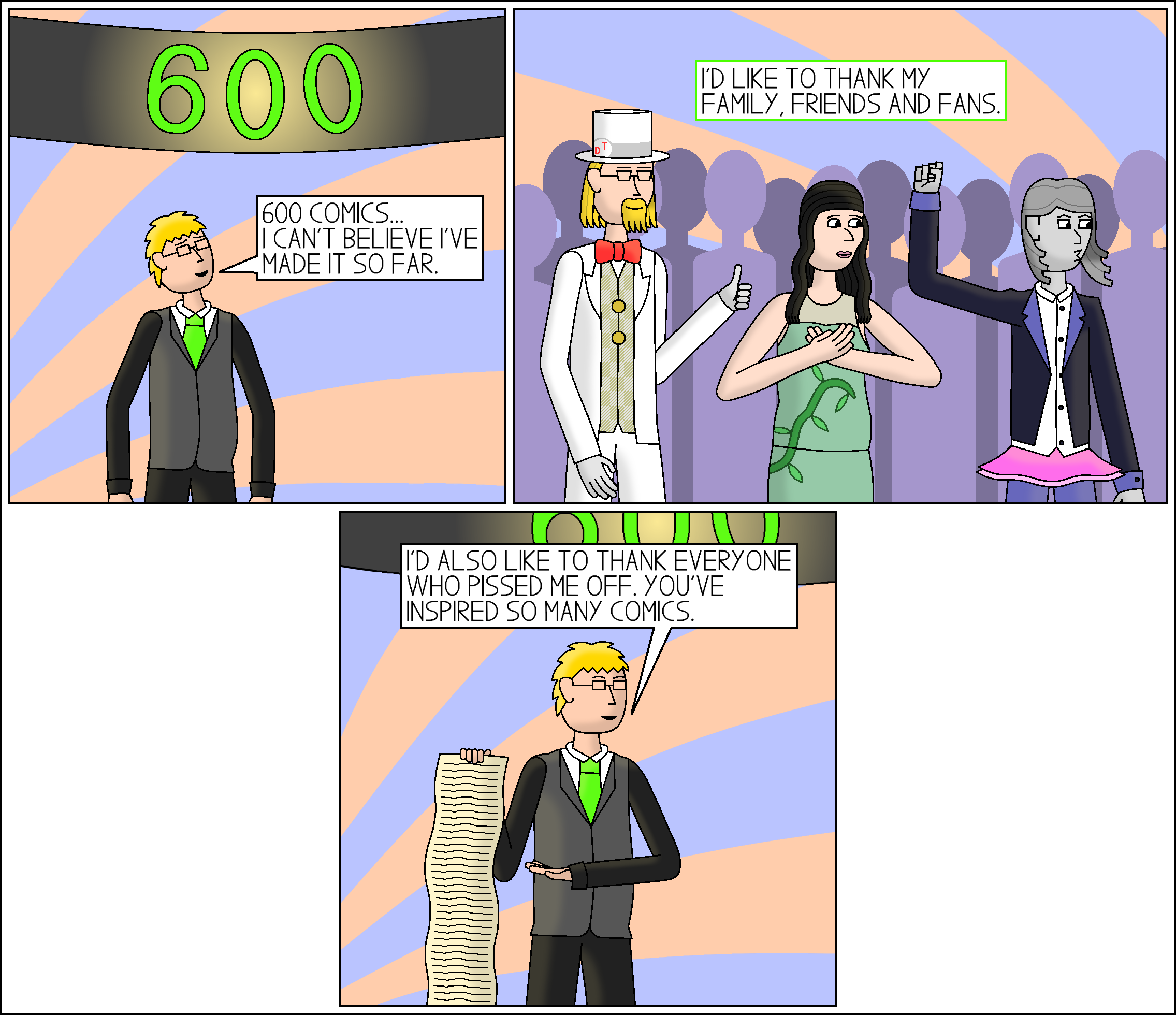 I love seeing a number divisible by 100 in the title. My next comic will have the number 700, just so I can experience that feeling again!