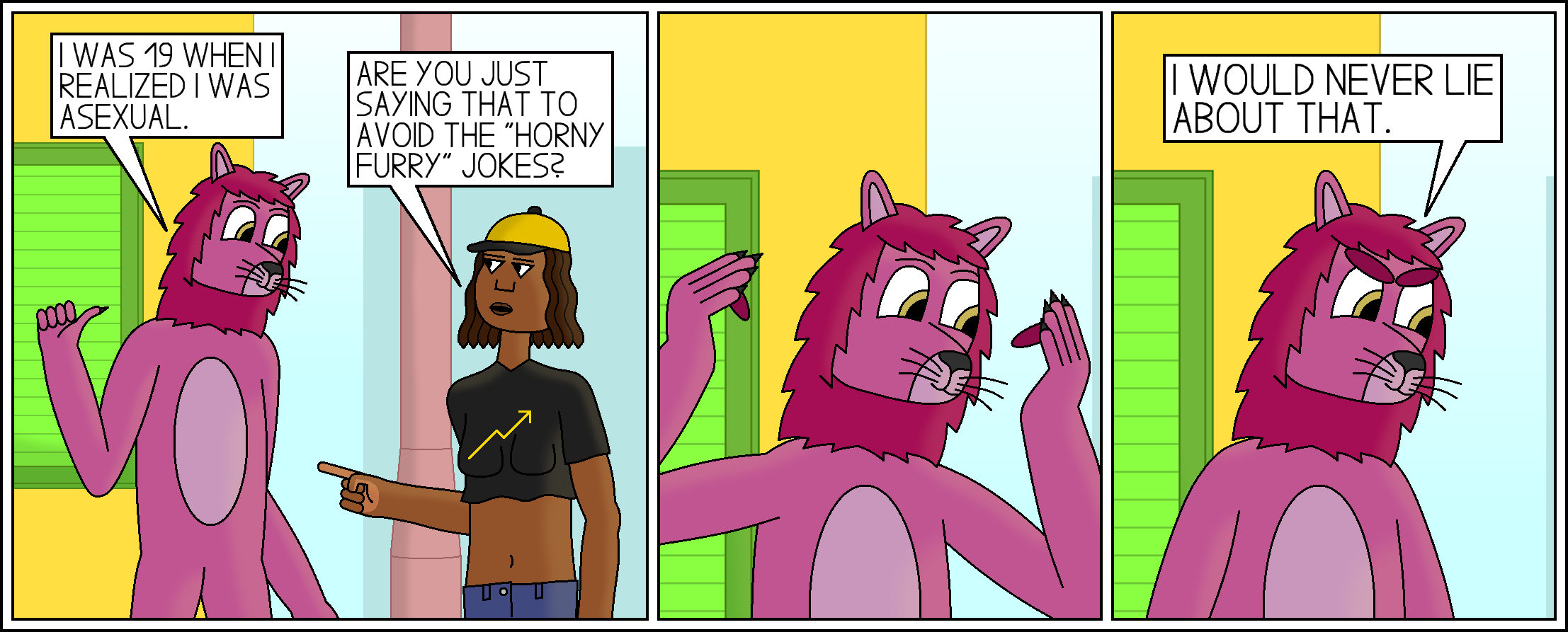 Comic 622: A Lustless Lion August 18, 2025 If I was talking to a furry and they put on angry eyebrows, I don’t know what I would do.