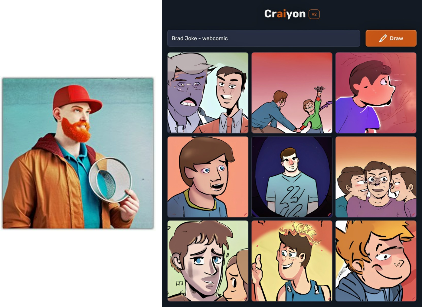 There’s a bit of story behind this. It started with S. sending me the picture on the left. I thought a few parts (such as the hand and the colander) looked off, so I asked if it was AI generated. They told me that they used AI images for inspiration, but they did draw it. This all prompted Rita to actually generate pictures of Brad Joke in Craiyon.