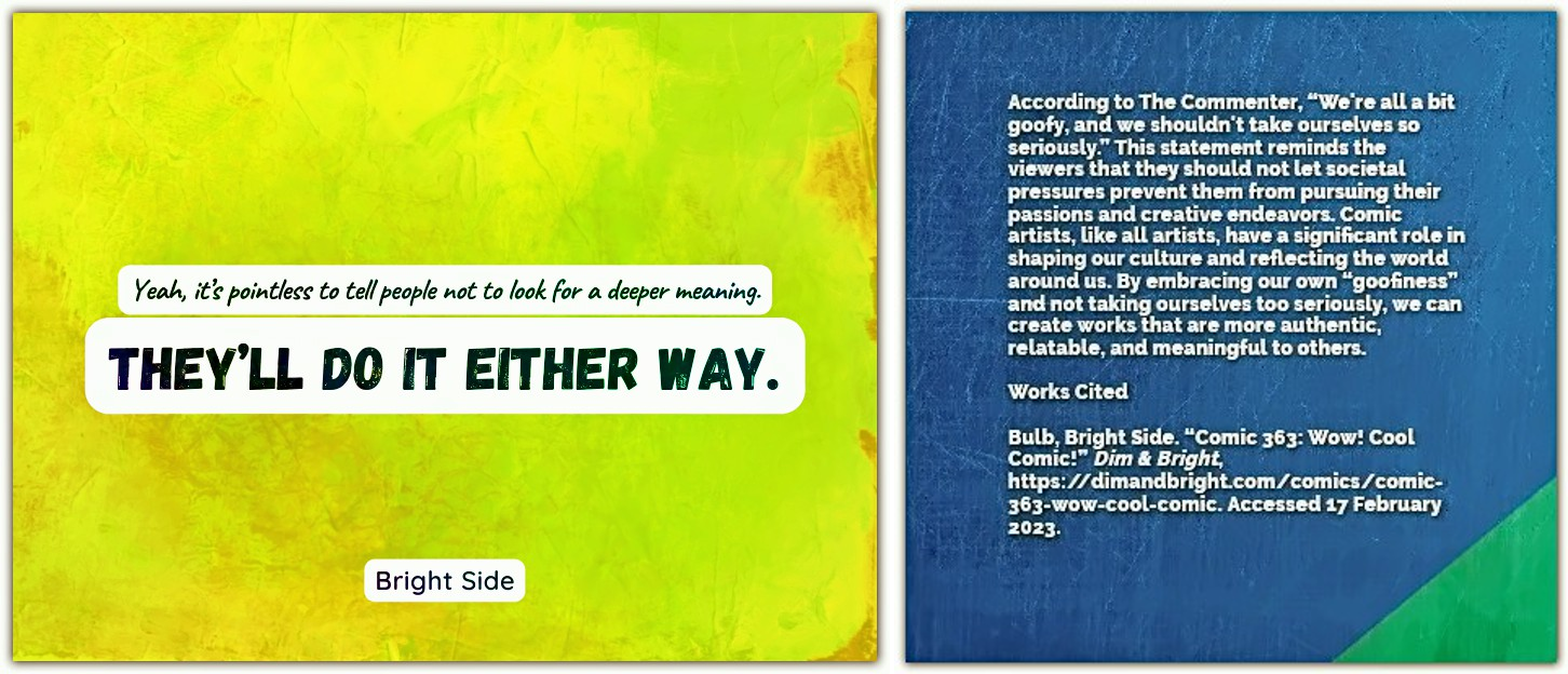 According to the “death of the author” principle, the author’s interpretation of their own work is equally as valid as the readers’. Not more or less.