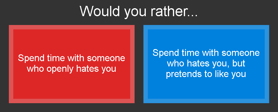 I played the “Would you rather” game several times on this blog already; I went to the website and talked about a few questions. This time, I want to make my own. I’ll ask you five questions and you can answer in the comments if you want. There are a lot of these kinds of questions on the internet, so if I accidentally copied someone, I apologize. Let’s begin.