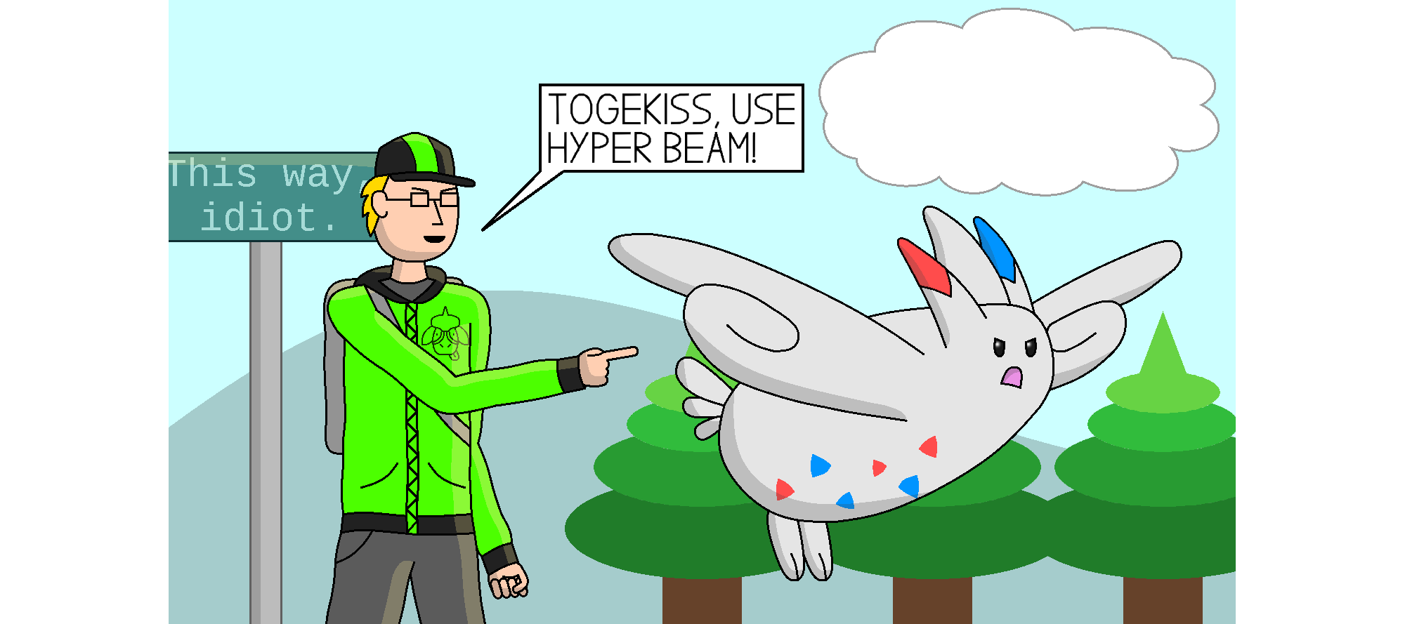 A while ago, I started playing Pokemon Legends: Arceus and it reawakened my love of the franchise. I thought it would be fun if I drew myself as a trainer fighting alongside my favorite Pokemon: Togekiss. I had one in Pokemon HeartGold and the adorable monster mowed down everything in his path. I should’ve called him the Angel of Death.