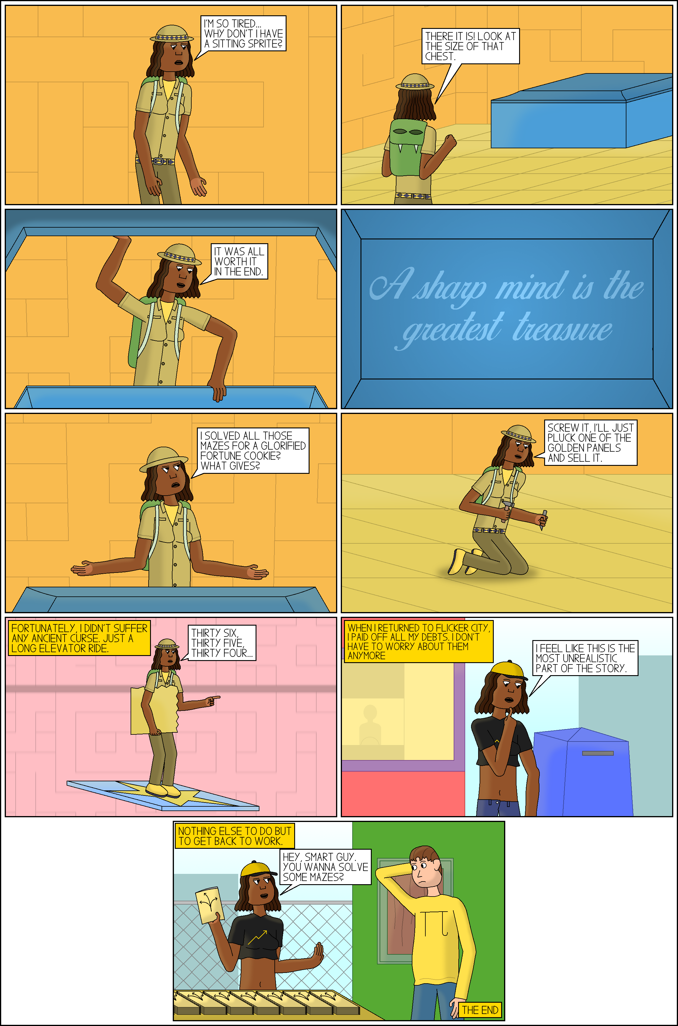 And that’s the end of the story. Unlike Punch Code, the events of this game didn’t affect the webcomic, so I wasn’t in a rush to post this. Besides, Venture Cap is probably the easiest game I’ve made. You can beat most levels through trial and error.